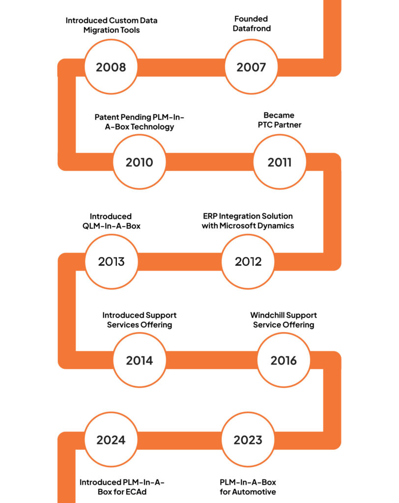 Founded in 2007, Datafrond offers industry proven best practice processes and technology solutions for small to mid-size businesses looking to improve their product development processes. We provide solutions for CAD, Product Lifecycle Management (PLM), Quality Management (QLM/QMS) and Industrial Internet of Things. Most notably, Datafrond’s proprietary PLM-IN-A-BOX and Quality Management solutions are recognized for their proven methods and successfully adopted by many industrial product manufacturers. We have helped some of the world’s most recognized companies to become more innovative and competitive by helping create efficiency in product development processes. Our approach focuses on building the right PLM foundation that integrates the process, systems, data and people.